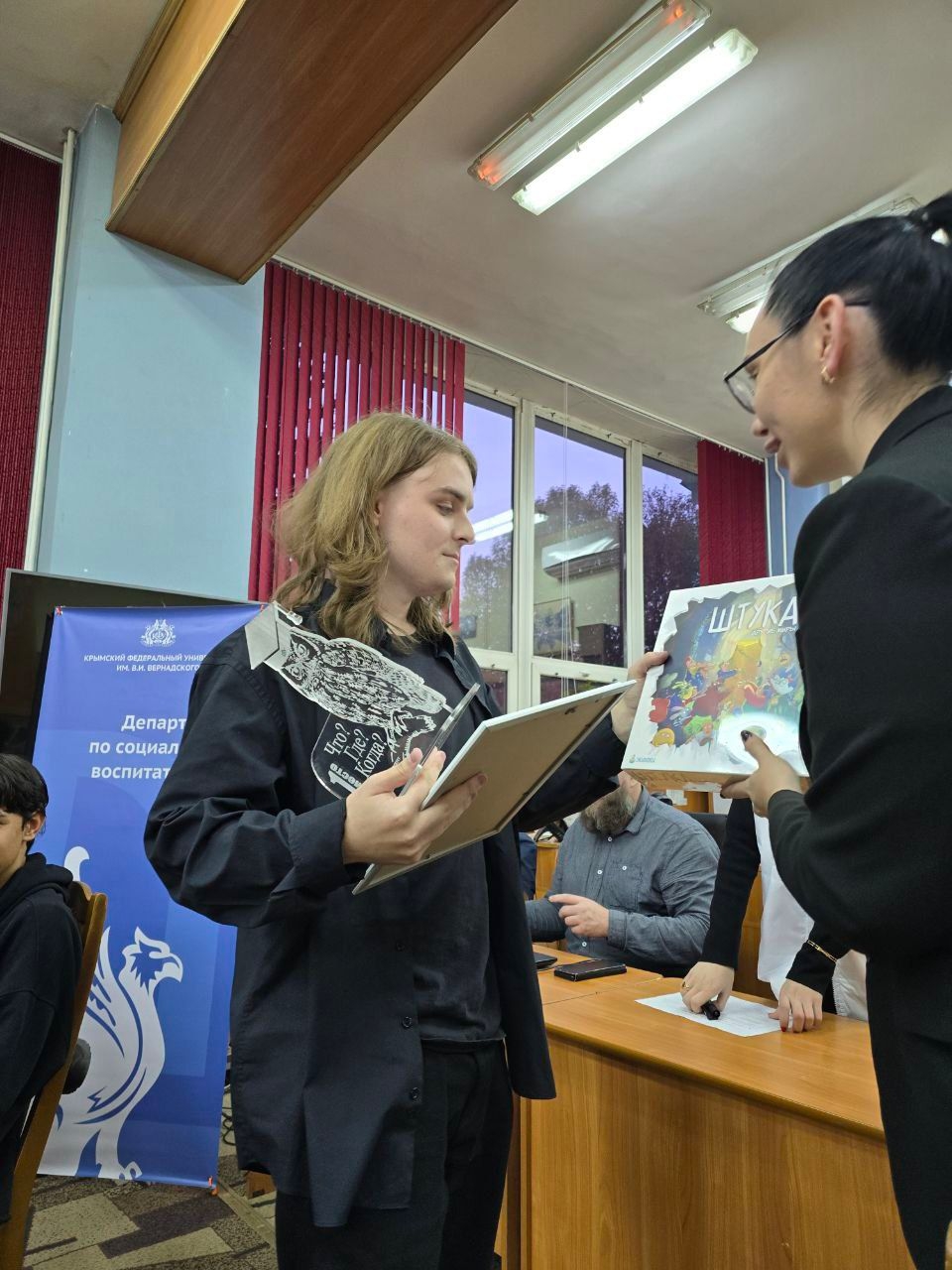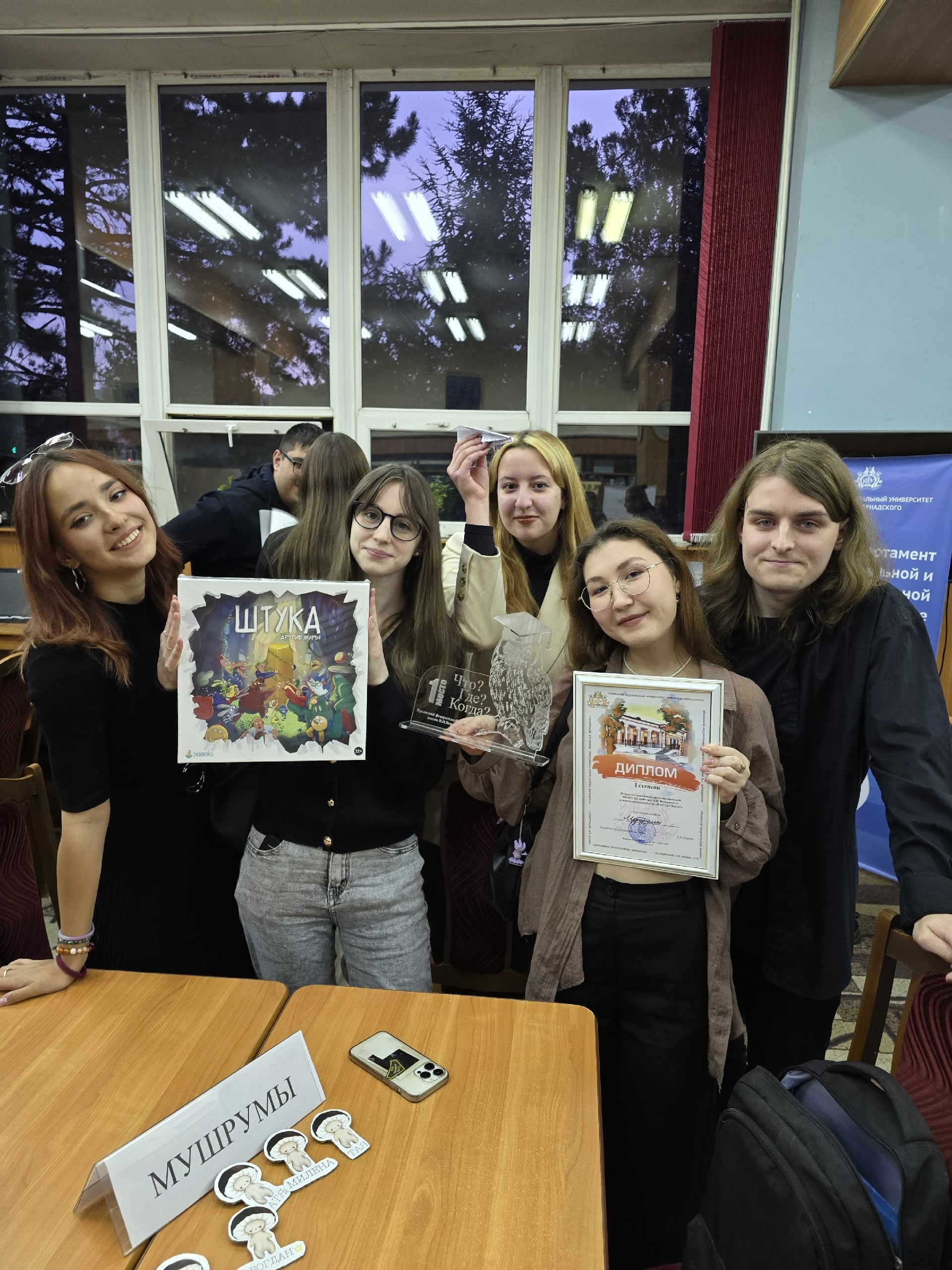 Команда «Мушрумы» Института филологии заняла 1 место в Открытом чемпионате среди обучающихся ФГАОУ ВО «Крымский федеральный университет имени В.И. Вернадского» по интеллектуальной игре «Что? Где? Когда?»!