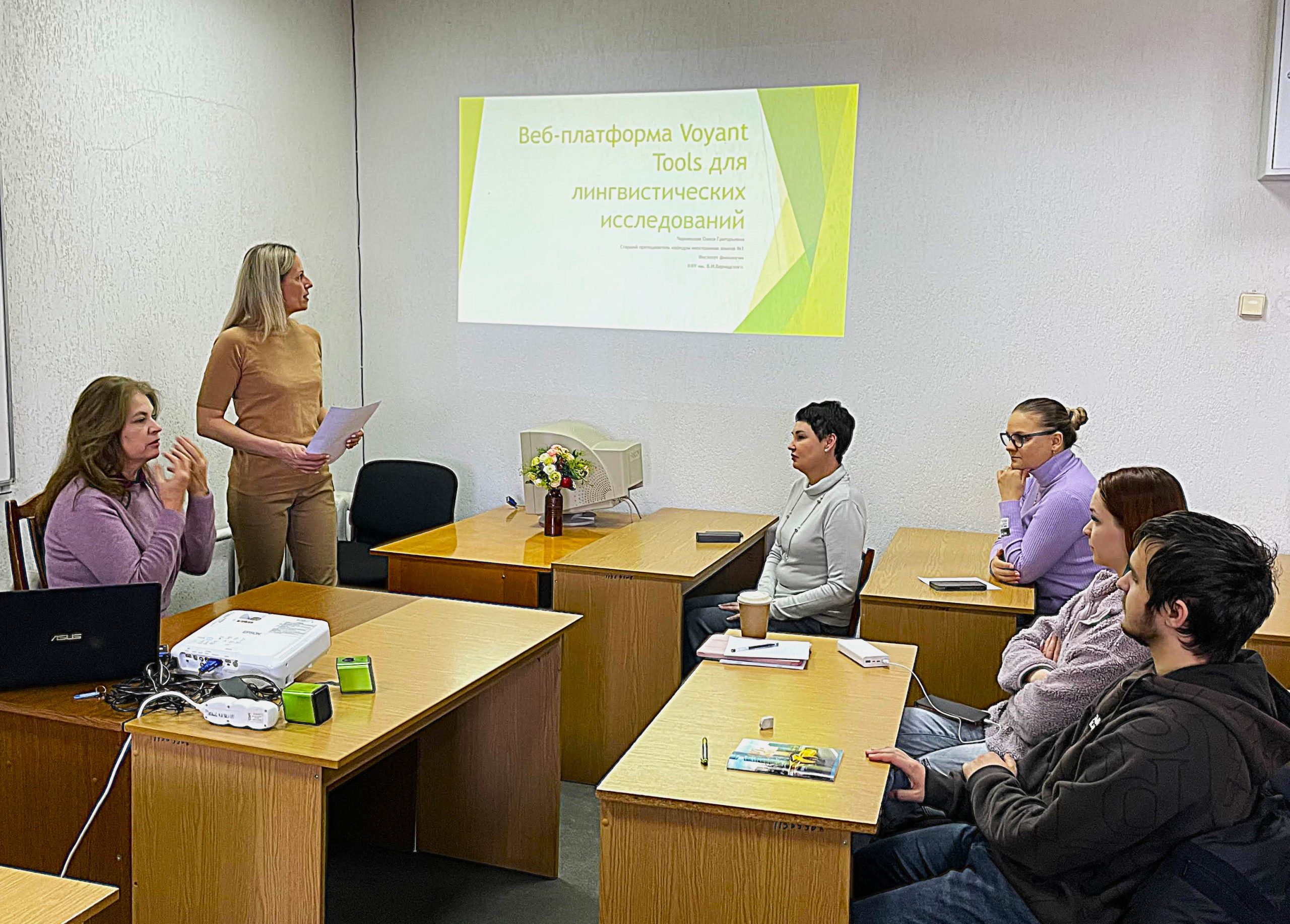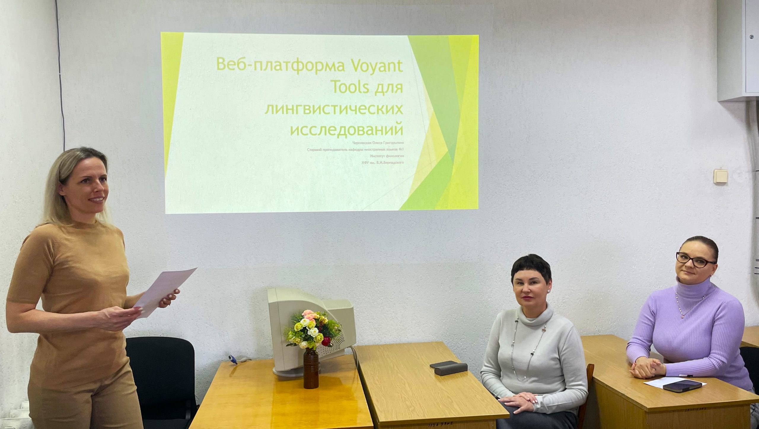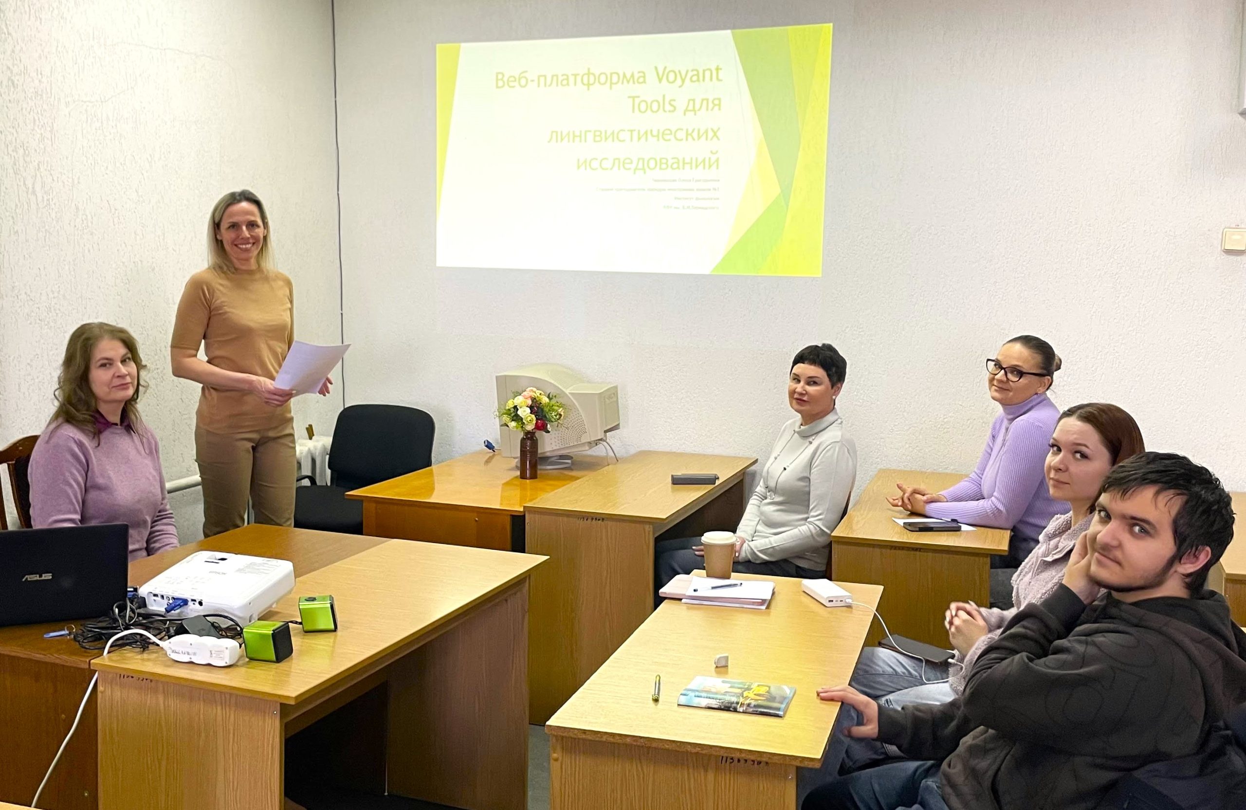 12 февраля, в рамках Дней науки «Крымского федерального университета имени В. И. Вернадского», старший преподаватель кафедры иностранных языков № 1 Института филологии Чернявская Олеся Григорьевна провела научный семинар для преподавателей и магистров специальностей «Информатика и вычислительная техника» и «Математика» на тему «Веб-платформа Voyant Tools в аспекте лингвистических исследований». В ходе семинара были продемонстрированы ключевые функции веб-платформы Voyant Tools, а также алгоритм обработки языкового материала, что вызвало искренний интерес у аудитории.